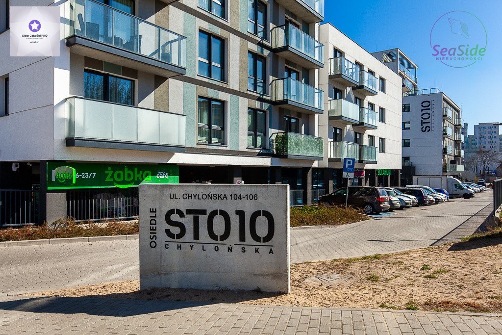 Mieszkanie znajduje się na zamkniętym, nowoczesnym osiedlu Chylońska sto10. Do dyspozycji mieszkańców są place zabaw, alejki spacerowe oraz strefy rekreacyjne. Budynek nowoczesny, wyposażony w dwie windy. Wejście zabezpieczone dodatkowymi drzwiami, co zapewnia mieszkańcom komfort, cisze i bezpieczeństwo. W pobliżu pełna infrastruktura handlowo - usługowa oraz dogodna komunikacja. Zaledwie 8 min pieszo od SKM Gdynia Chylonia, 3 - 5min od Obwodnicy Trójmiasta.