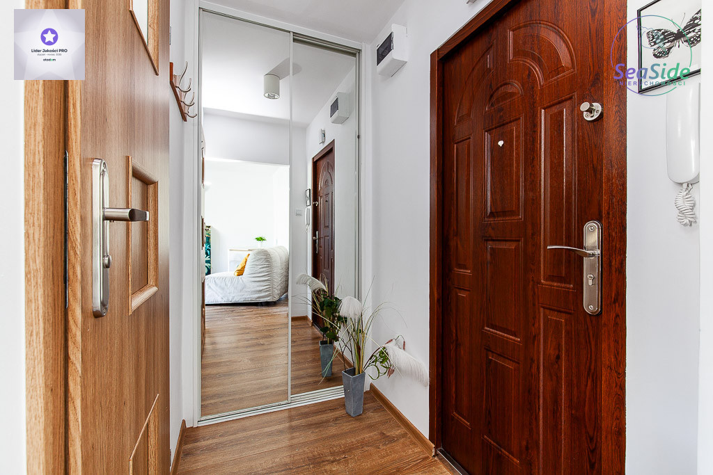 - przedpokoju zabudowanego szafą typu Komandor z lustrzanymi drzwiami,