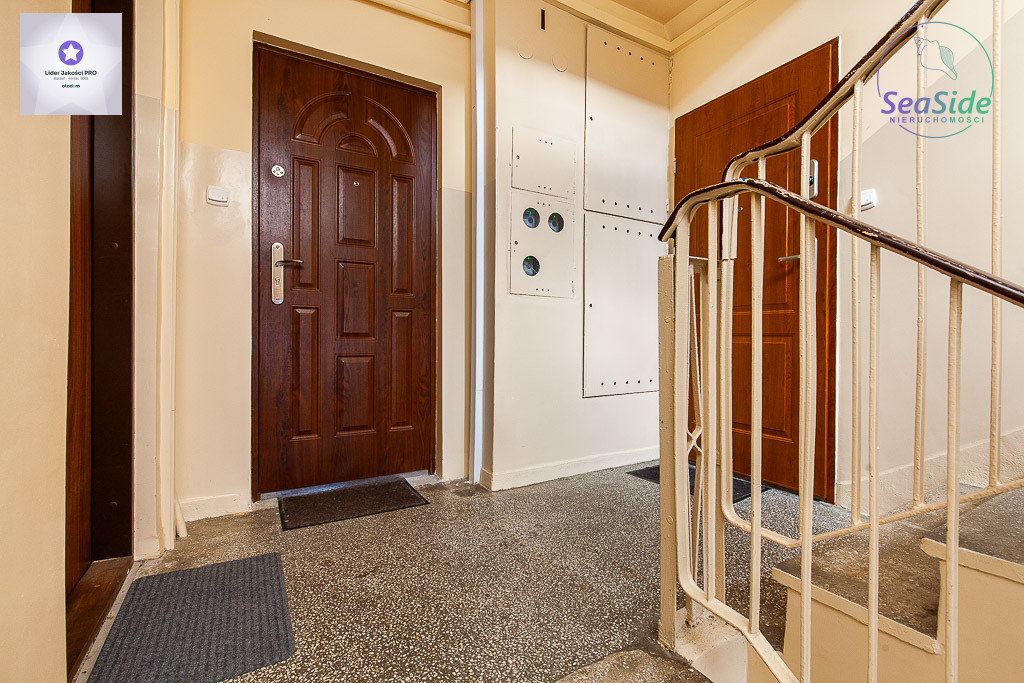 na I piętrze, niskiego, zadbanego bloku, położonego w doskonałej lokalizacji.