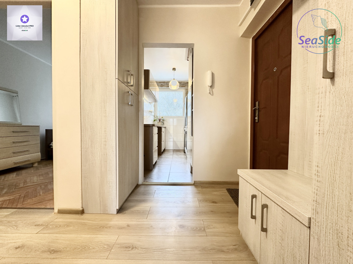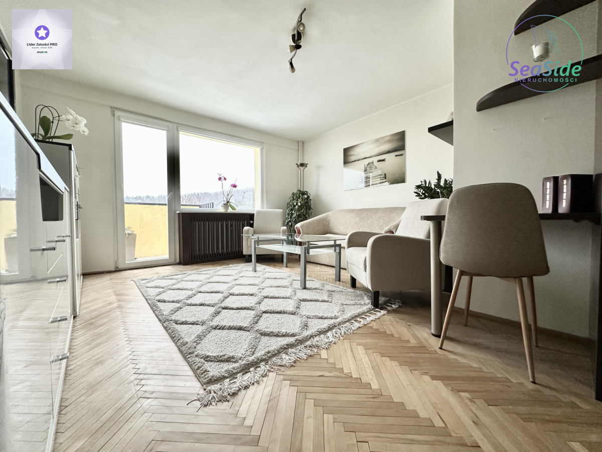 Mieszkanie składa się z jasnego salonu, sypialni, kuchni, łazienki z prysznicem oraz przedpokoju. Lokal jest jasny i słoneczny (ekspozycja salonu wschodnia) z pięknym widokiem na morze, Trójmiejski Park Krajobrazowy i na panoramę miasta !! Mieszkanie bardzo czyste i zadbane, wyposażone w meble oraz sprzęt RTV i AGD (pralka, lodówka, piekarnik, kuchenka gazowa, telewizor itp.)