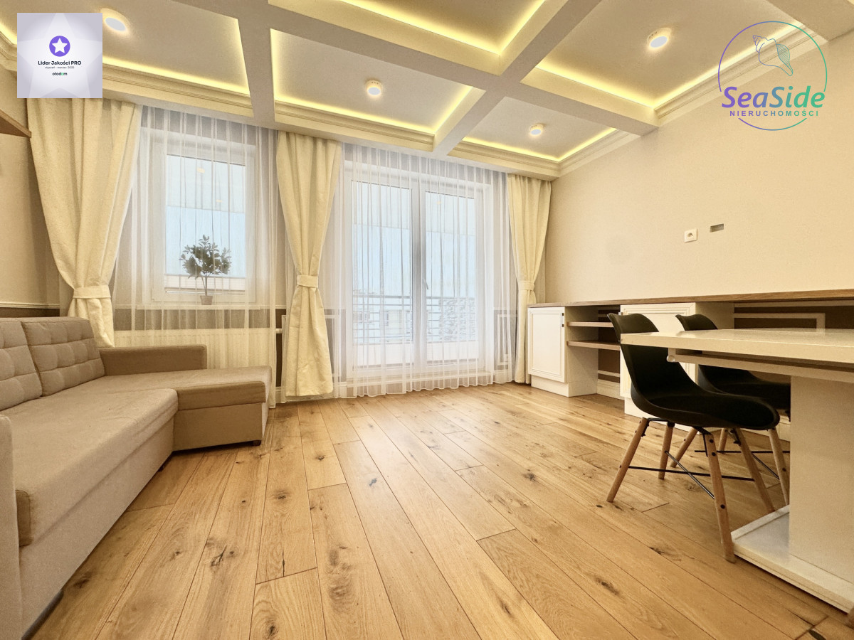 widok wychodzi Trójmiejski Park Krajobrazowy. Salon z aneksem kuchennym w pełni wyposażony w niezbędne zabudowy oraz sprzęt AGD (lodówka, zmywarka, płyta indukcyjna, piekarnik, okap). Drugi pokój do aranżacji przez Najemców.