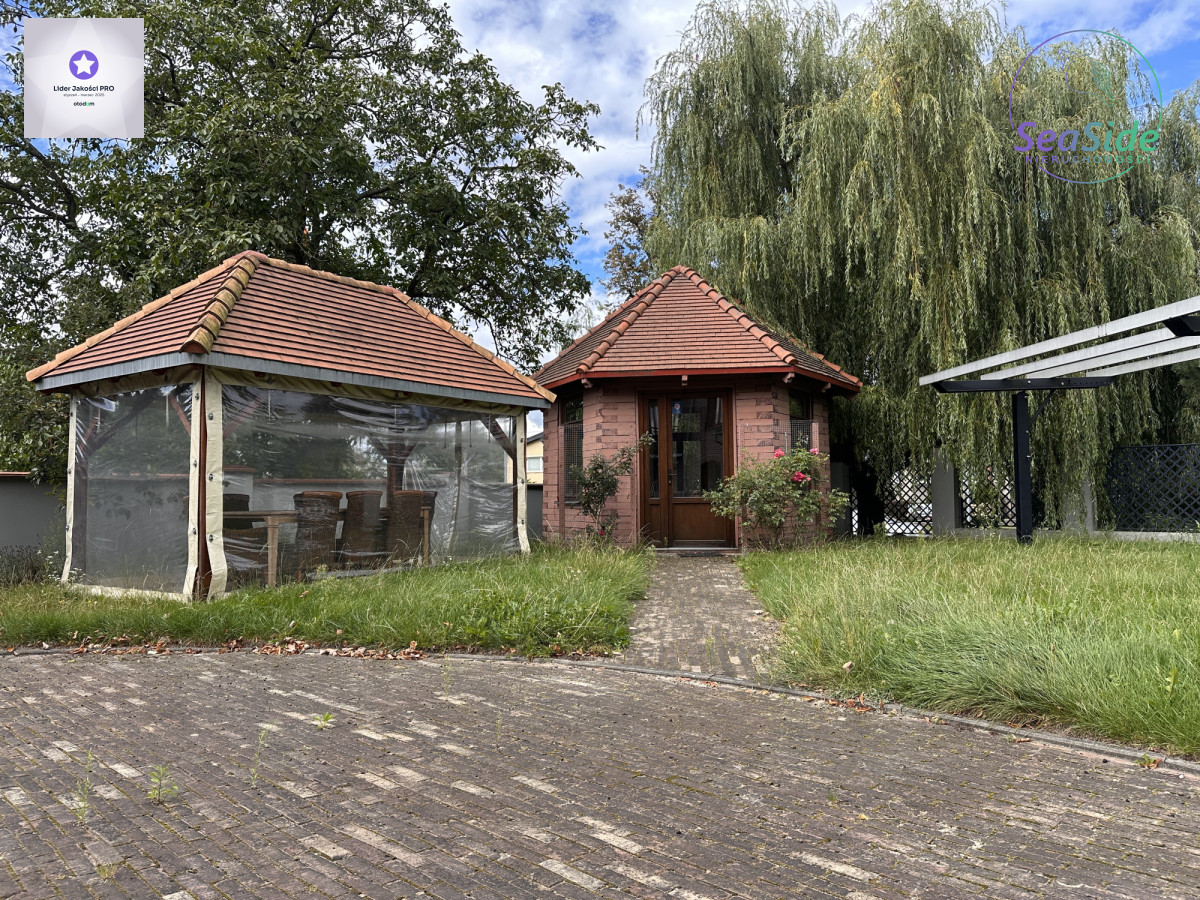 Na terenie posesji znajduję się letnia altanka, przestrzeń grillowa, konstrukcja pod fotowoltaikę, drewutnia oraz wiele miejsc parkingowych.