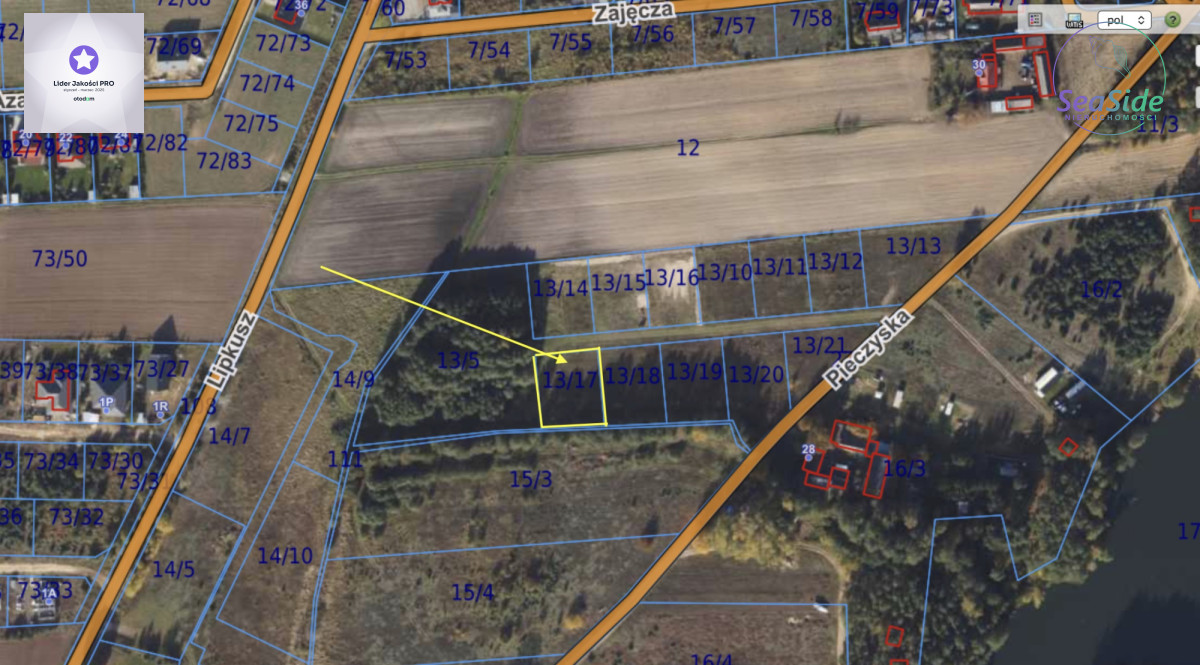 Działka zlokalizowana jest w Koronowie (Pieczyska - Lipkusz) zaledwie 200 m od brzegu wody. Wyjątkowa lokalizacja tuż obok jeziora Lipkusz oraz Zalewu Koronowskiego. Bezpośrednie sąsiedztwo lasu, turystycznej plaży i mola zapewnia ciszę, kontakt z naturą oraz doskonałe warunki do wypoczynku i rekreacji. Idealne miejsce pod zabudowę rekreacyjną lub całoroczną, a także jako inwestycja.