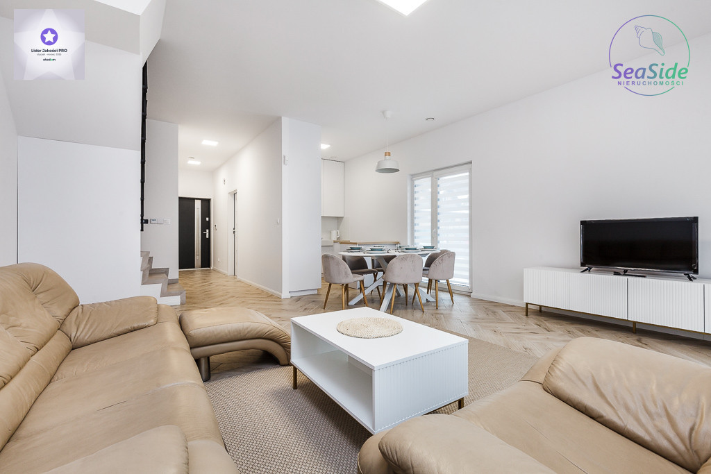 Dom zlokalizowany jest w najbardziej lubianej części Banina !!!Połowa bliźniaka świeżo wykończona w wysokim standardzie. Na parterze znajduje się duża kuchnia z jadalnią, salon z wyjściem do ogródka, pokój - gabinet, toaleta i kotłownia. Parter został w pełni wyposażony w meble oraz sprzęt AGD i RTV.