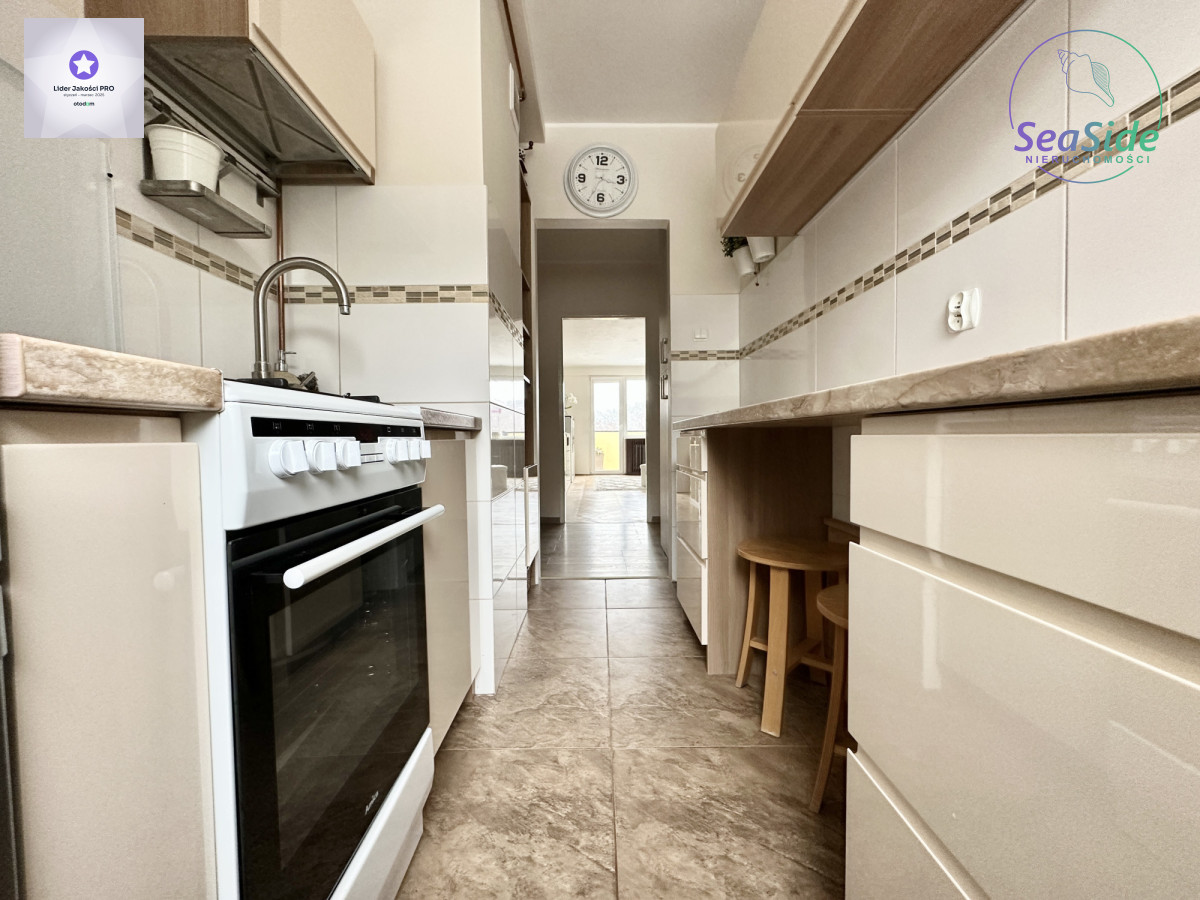 Mieszkanie składa się z jasnego salonu, sypialni, kuchni, łazienki z prysznicem oraz przedpokoju. Lokal jest jasny i słoneczny (ekspozycja salonu wschodnia) z pięknym widokiem na morze, Trójmiejski Park Krajobrazowy i na panoramę miasta !! Mieszkanie bardzo czyste i zadbane, wyposażone w meble oraz sprzęt RTV i AGD (pralka, lodówka, piekarnik, kuchenka gazowa, telewizor itp.)