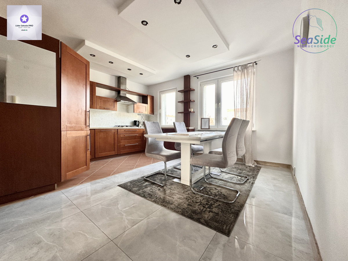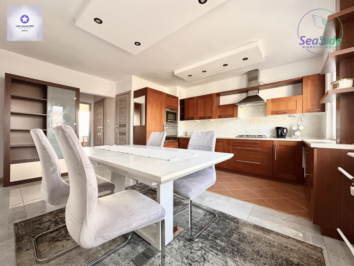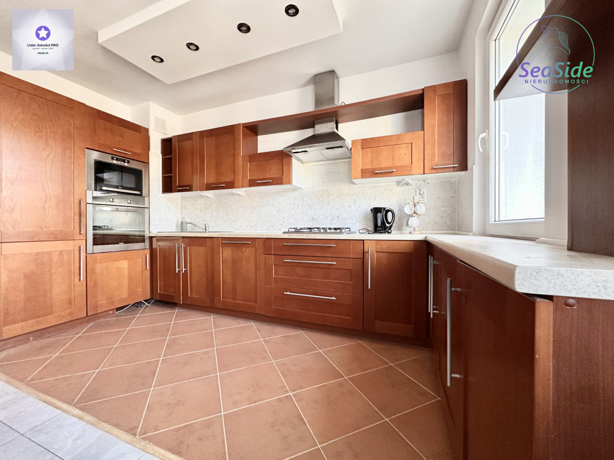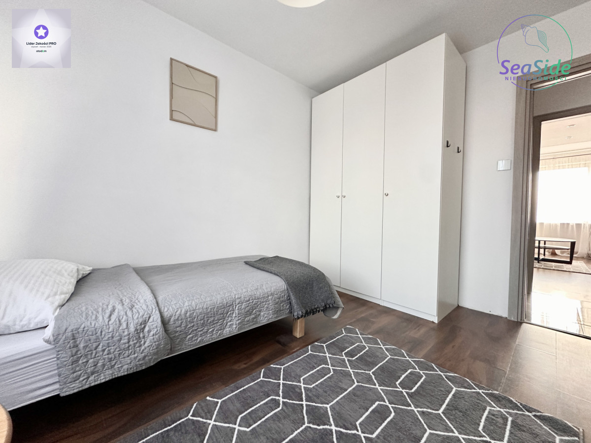 Lokal (68 m2) składa się ze słonecznego salonu z wyjściem na duży balkon, z którego rozpościera się widok na panoramę miasta i tereny zielone wokół budynku, 2 sypialni oraz dużej otwartej kuchni z jadalnią, która może pełnić funkcję salonu z aneksem kuchennym. Mieszkanie odświeżone i wyposażone w niezbędne meble i sprzęty RTV i AGD (duża lodówka, płyta grzewcza, piekarnik, zmywarka itp.).